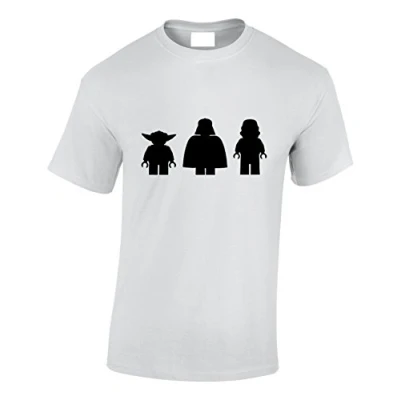 Crown Designs Bricks Space Wars Silhouette Sci Fi Movie Film Inspired for Men & Teenagers T Shirts Tops White/Medium