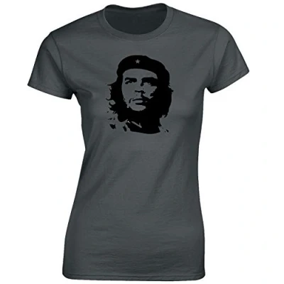 Crown Designs Che Guevara Iconic Image for Women & Teenagers Fitted T Shirts Tops Charcoal/M 8/10
