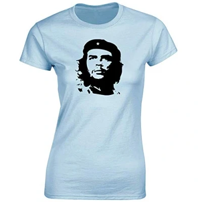 Crown Designs Che Guevara Iconic Image for Women & Teenagers Fitted T Shirts Tops Light Blue/L 10/12