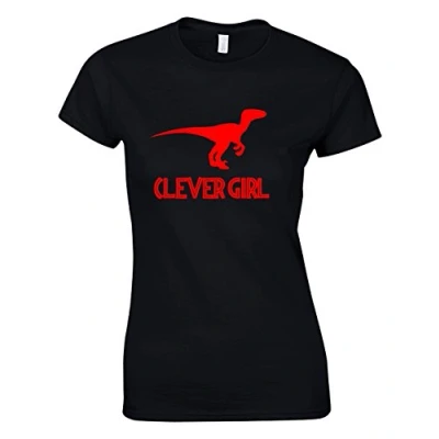 Crown Designs Clever Girl Dinosaur Action Movie Film Inspired Gift for Women & Teenagers Fitted T Shirts Tops Black/XXL 14/16