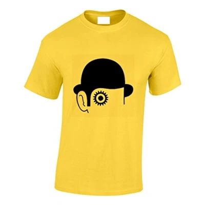 Crown Designs Clockwork Alex Artwork Horror Film Inspired for Men & Teenagers T Shirts Tops Yellow/XX Large