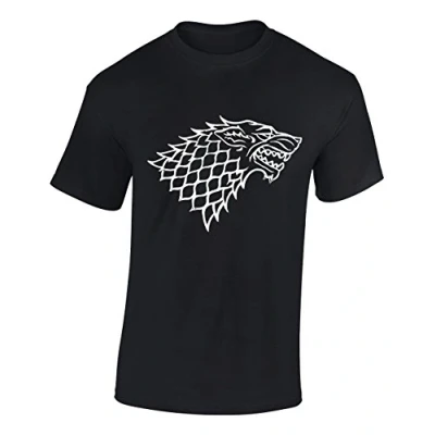 Crown Designs Direwolf House of Stark Sigil Fantasy TV Show Inspired for Men & Teenagers T Shirts Tops Black/X Large
