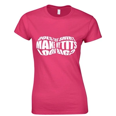 Crown Designs Does This Shirt Make My Tits Look Big Funny Rude Humor Gifts for Women Fitted T Shirts Tops Hot Pink/XXL 14/16