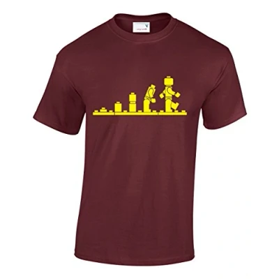 Crown Designs Evolution of Bricks Cool Funky Geek Nerd for Men & Teenagers T Shirts Tops Maroon/Medium