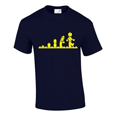 Crown Designs Evolution of Bricks Cool Funky Geek Nerd for Men & Teenagers T Shirts Tops Navy/X Large