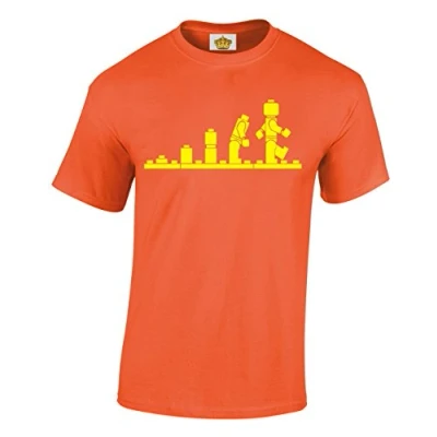 Crown Designs Evolution of Bricks Cool Funky Geek Nerd for Men & Teenagers T Shirts Tops Orange/Medium