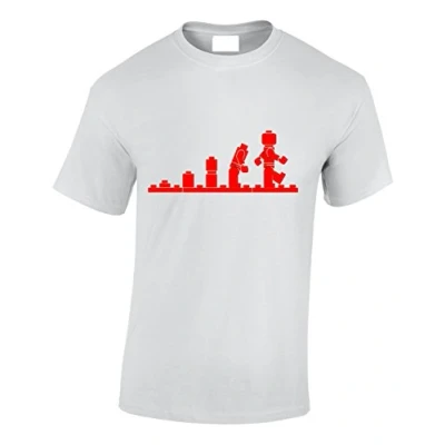 Crown Designs Evolution of Bricks Cool Funky Geek Nerd for Men & Teenagers T Shirts Tops White/Small