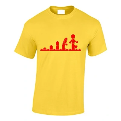 Crown Designs Evolution of Bricks Cool Funky Geek Nerd for Men & Teenagers T Shirts Tops Yellow/XX Large