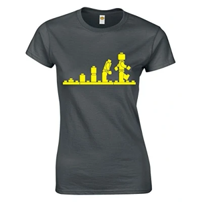Crown Designs Evolution of Bricks Cool Funky Geek Nerd Gift for Women & Teenagers Fitted T Shirts Tops Charcoal/L 10/12