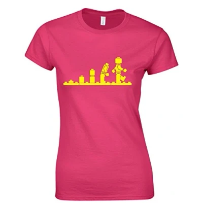 Crown Designs Evolution of Bricks Cool Funky Geek Nerd Gift for Women & Teenagers Fitted T Shirts Tops Hot Pink/S 6/8