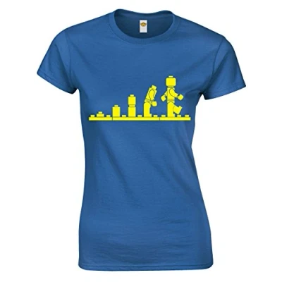 Crown Designs Evolution of Bricks Cool Funky Geek Nerd Gift for Women & Teenagers Fitted T Shirts Tops Royal Blue/XXL 14/16