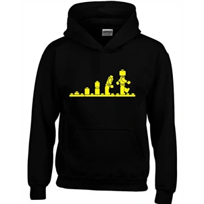 Crown Designs Evolution of Bricks Cool Funky Geek Nerd Gift Unisex Hoodies for Men, Women & Teenagers Black/XX Large