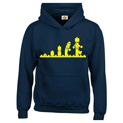Crown Designs Evolution of Bricks Cool Funky Geek Nerd Gift Unisex Hoodies for Men, Women & Teenagers Navy/Large