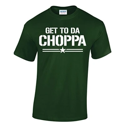 Crown Designs Get to Da Choppa Arnie Quotes for Men & Teenagers T Shirts Tops Dark Green/Large