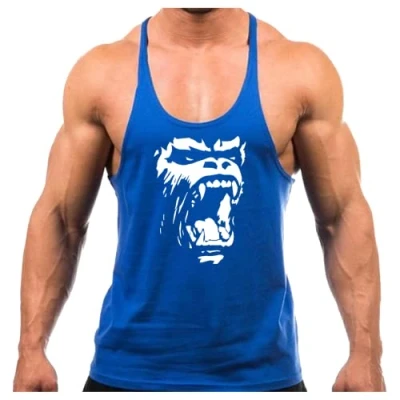 Crown Designs Gorilla Roar Bodybuilding Weight training Sports Stringer Vest Top with Y Back Racerback Fit for Men & Teens Royal White Design/Medium