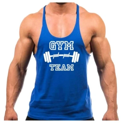 Crown Designs Gym Team Bodybuilding Weight Training Sports Stringer Vest Top with Y Back Racerback Fit for Men & Teens Royal White Design/Medium
