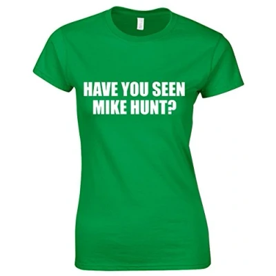 Crown Designs Have You Seen Mike Hunt Funny Rude Humor Gifts for Women Fitted T Shirts Tops Green/XL 12/14