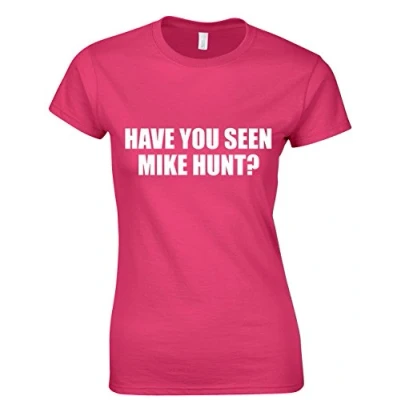 Crown Designs Have You Seen Mike Hunt Funny Rude Humor Gifts for Women Fitted T Shirts Tops Hot Pink/XL 12/14