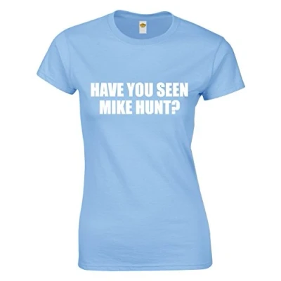 Crown Designs Have You Seen Mike Hunt Funny Rude Humor Gifts for Women Fitted T Shirts Tops Light Blue/XL 12/14