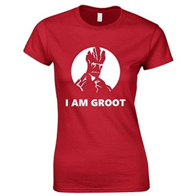 Crown Designs I Am Groot Super Hero Movie & Comic Book Fan Gift for Women Teenagers Fitted T Shirts Tops Red/S 6/8