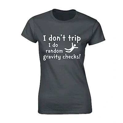 Crown Designs I Don't Trip Funny for Women & Teenagers Fitted T Shirts Tops Charcoal/XXL 14/16