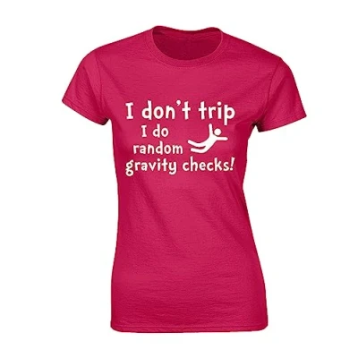 Crown Designs I Don't Trip Funny for Women & Teenagers Fitted T Shirts Tops Hot Pink/XXL 14/16