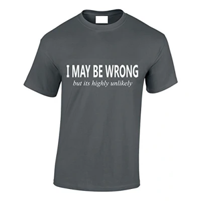 Crown Designs I May be Wrong But Its Highly Unlikely Funny Cool for Men & Teenagers T Shirts Tops Charcoal/Medium