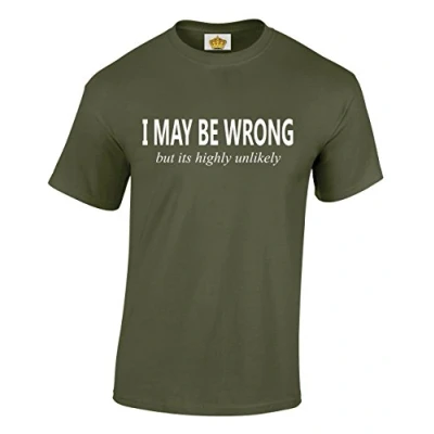 Crown Designs I May be Wrong But Its Highly Unlikely Funny Cool for Men & Teenagers T Shirts Tops Military Green/Large