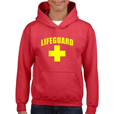 Crown Designs Lifeguard Classic US Beach TV Show Inspired Gift for Young Children Hooded Tops (Red with Yellow Design/Ages 12 13 Years)