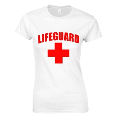 Crown Designs Lifeguard for Women & Teenagers Fitted T Shirts Tops White/L 10/12