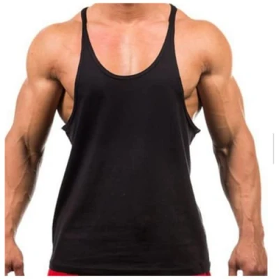 Crown Designs Plain Colour Bodybuilding Weight Training Sports Stringer Vest Top with Y Back Racerback Fit for Men & Teens Black/Large