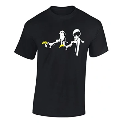 Crown Designs Pulp Fiction Banksy Style Novelty Gifts for Men & Teenagers T Shirts Tops Black / 3X Large