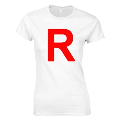Crown Designs R Team Rocket Logo Pocket Monsters Inspired Gift for Women & Teenagers Fitted T Shirts Tops White/XL 12/14