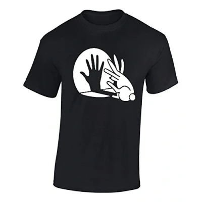 Crown Designs Rabbit Hand Shadow Puppet Funny Cool for Men & Teenagers T Shirts Tops Black/Medium