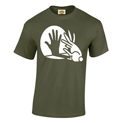 Crown Designs Rabbit Hand Shadow Puppet Funny Cool for Men & Teenagers T Shirts Tops Military Green/X Large