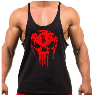 Crown Designs Skull Gym Bodybuilding Weight Training Sports Stringer Vest Top with Y Back Racerback Fit for Men & Teens Black Red Design/Large