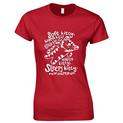 Crown Designs Soft Kitty Warm Comedy TV Show Inspired Gift for Women & Teenagers Fitted T Shirts Tops Red/XXL 14/16