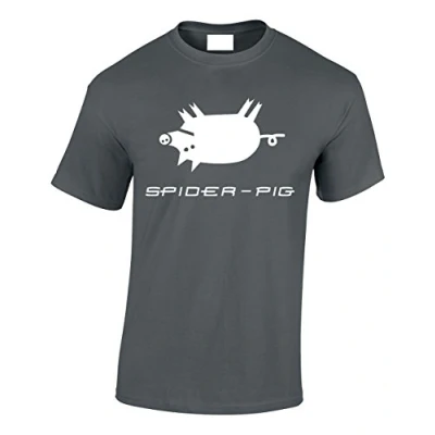 Crown Designs Spider Pig Comedy TV Show Inspired for Men & Teenagers T Shirts Tops Charcoal/Small
