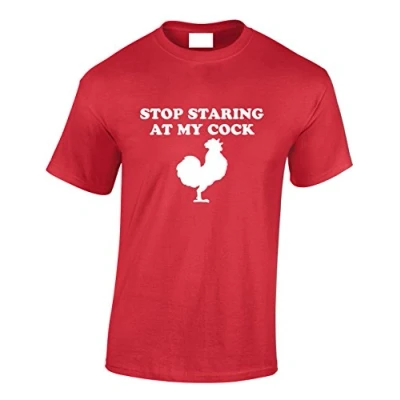 Crown Designs Stop Looking at My Cock Funny Rude Humor Gifts for Men T Shirts Tops Red/Small