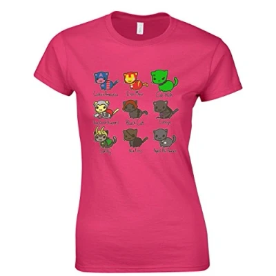 Crown Designs The Cat Superheros Super Hero Movie & Comic Book Fan Gift for Women Teenagers Fitted T Shirts Tops Hot Pink/XL 12/14