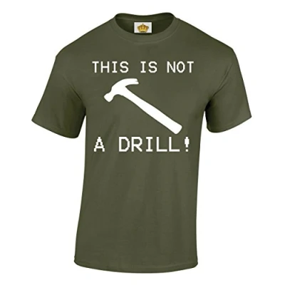 Crown Designs This is Not a Drill Funny Cool for Men & Teenagers T Shirts Tops Military Green/X Large