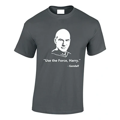 Crown Designs Use The Force Harry Gandalf Sci Fi Mashup Funny Cool for Men & Teenagers T Shirts Tops Charcoal/Large