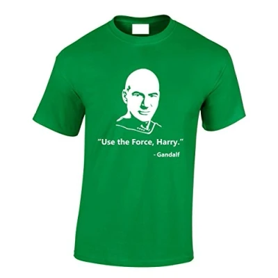 Crown Designs Use The Force Harry Gandalf Sci Fi Mashup Funny Cool for Men & Teenagers T Shirts Tops Green/X Large