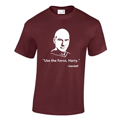 Crown Designs Use The Force Harry Gandalf Sci Fi Mashup Funny Cool for Men & Teenagers T Shirts Tops Maroon/Large