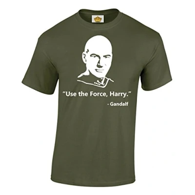 Crown Designs Use The Force Harry Gandalf Sci Fi Mashup Funny Cool for Men & Teenagers T Shirts Tops Military Green/XX Large