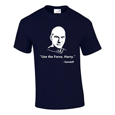 Crown Designs Use The Force Harry Gandalf Sci Fi Mashup Funny Cool for Men & Teenagers T Shirts Tops Navy/Large