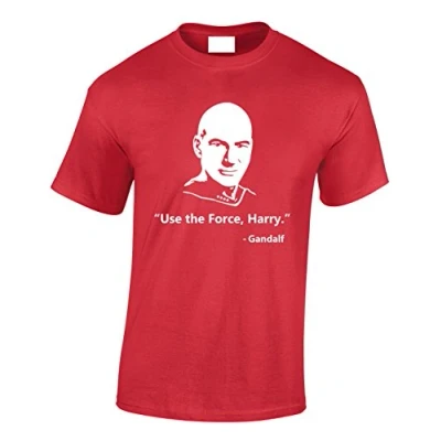 Crown Designs Use The Force Harry Gandalf Sci Fi Mashup Funny Cool for Men & Teenagers T Shirts Tops Red/Large