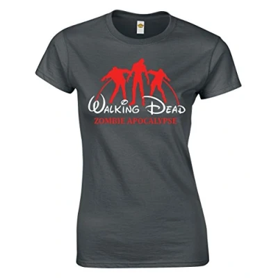 Crown Designs Walking Dead Zombie TV Show Inspired Gift for Women & Teenagers Fitted T Shirts Tops Charcoal/M 8/10