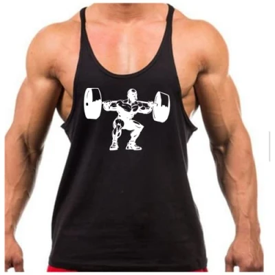 Crown Designs Weightlifter Silhouette Bodybuilding Weight training Sports Stringer Vest Top with Y Back Racerback Fit for Men & Teens Black White Design/Small