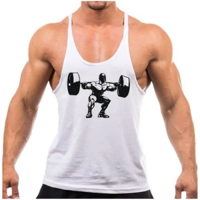 Crown Designs Weightlifter Silhouette Bodybuilding Weight training Sports Stringer Vest Top with Y Back Racerback Fit for Men & Teens White Black Design/X Large